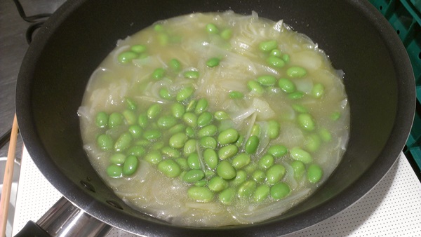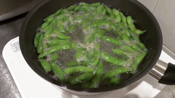 豆のみを取り出した枝豆さん。これを鍋の中に入れます。