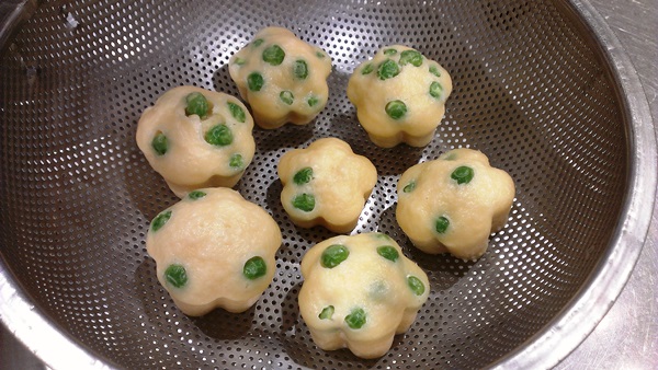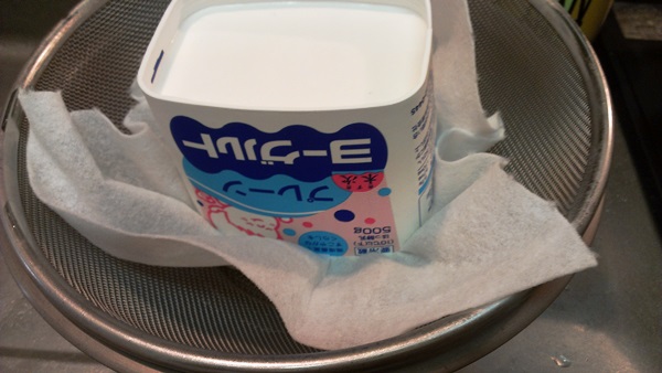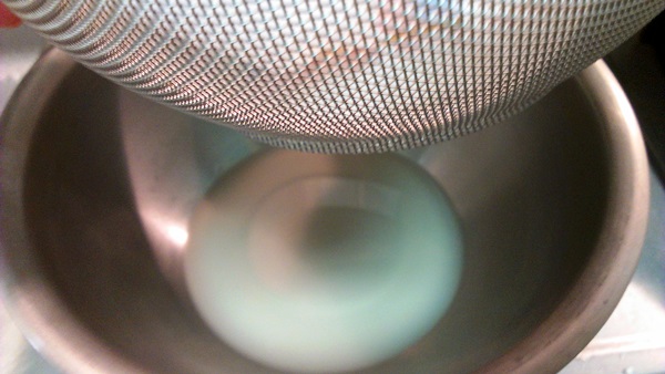 3分30秒たったら、ざるにあげます。