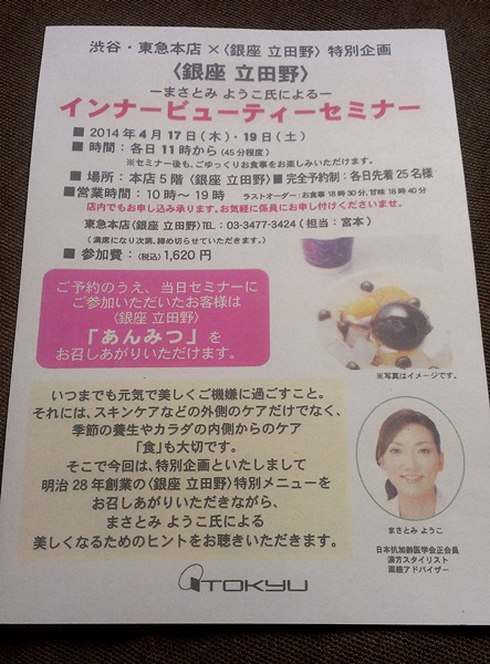 ご予約頂き、当日セミナーにご参加いただいたお客様には、銀座立田野特製スペシャルいちごあんみつを召し上がって頂きます♪♪