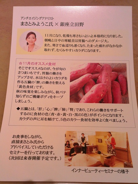 さて。毎月、銀座立田野東急本店さんにて、まさとみオリジナルのレシピメニューを監修させて頂いております♪♪