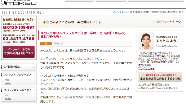 まさとみ連載コラム「美と健康コラム」@東急本店、2013年12月号は「冬のご機嫌ボディを作る味覚」!