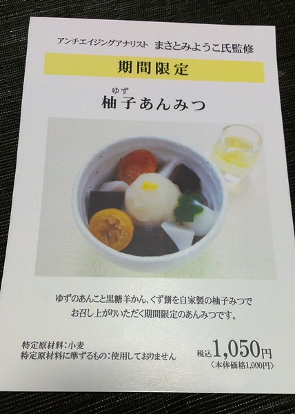 ◆2013年12月から2014年1月。まさとみ監修『柚子あんみつ』が銀座立田野東急本店にて、12月28日から好評発売中です!!